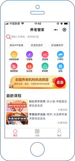 深圳市养老管家网络科技有限公司成立于2014年,专注于老年教育事业,是国内领先的老年教育行业解决方案服务商。 养老管家针对老年人的学习需求和特点,与全国医疗健康、文化艺术、营养保健、运动健身、生活服务等领域的专家 名师合作,策划制作了20+课程体系,200+精品课程,100万+分钟时长音视频内容,拥有独立版权。养老管家通过移 动互联网老年教育平台(微信公众号、微网站、APP和小程序),采用OMO( Online-Merge-Offline )模式,为社区 单位、养老机构、老年大学、老年文旅等为老服务企业和老年人提供优质老年教育内容、平台和行业解决方案,打造 线上线下一体化的网络老年教育服务体系。